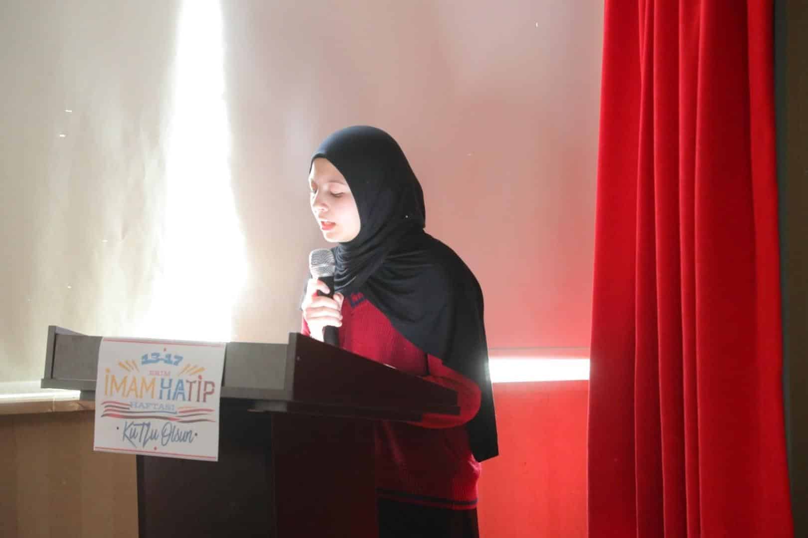 Saygı duruşu ve İstiklâl Marşı'nın okunmasıyla başlayan program, Kur'an-ı Kerim tilaveti ile devam etti. Ardından okul müdürü Şükrü Ebrem, günün anlam ve önemine dair bir konuşma gerçekleştirdi. Program kapsamında; "Önden Gidenler, Mahmud Celaleddin Ökten" adlı video gösterimi, "Yine de Sen" isimli ilahi, "İmam Hatipli Olmak" konulu Oratoryo ve "Mescid-i Aksa'yı Gördüm Düşümde" adlı şiir okundu.