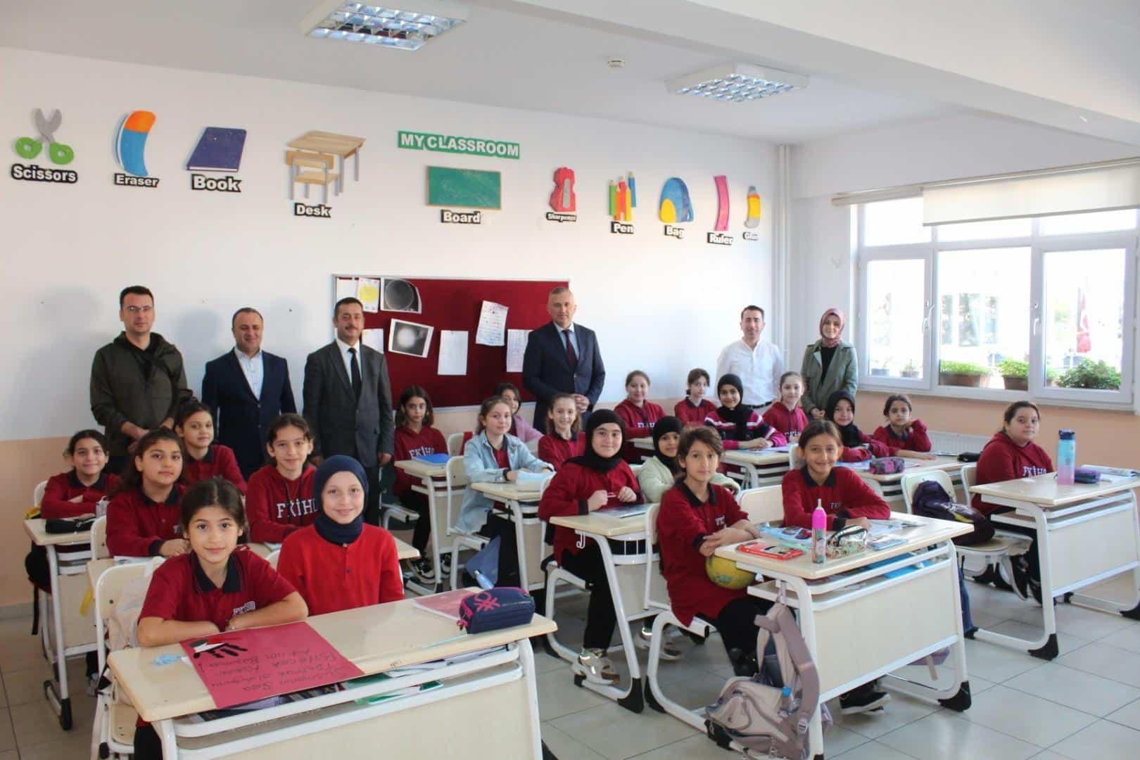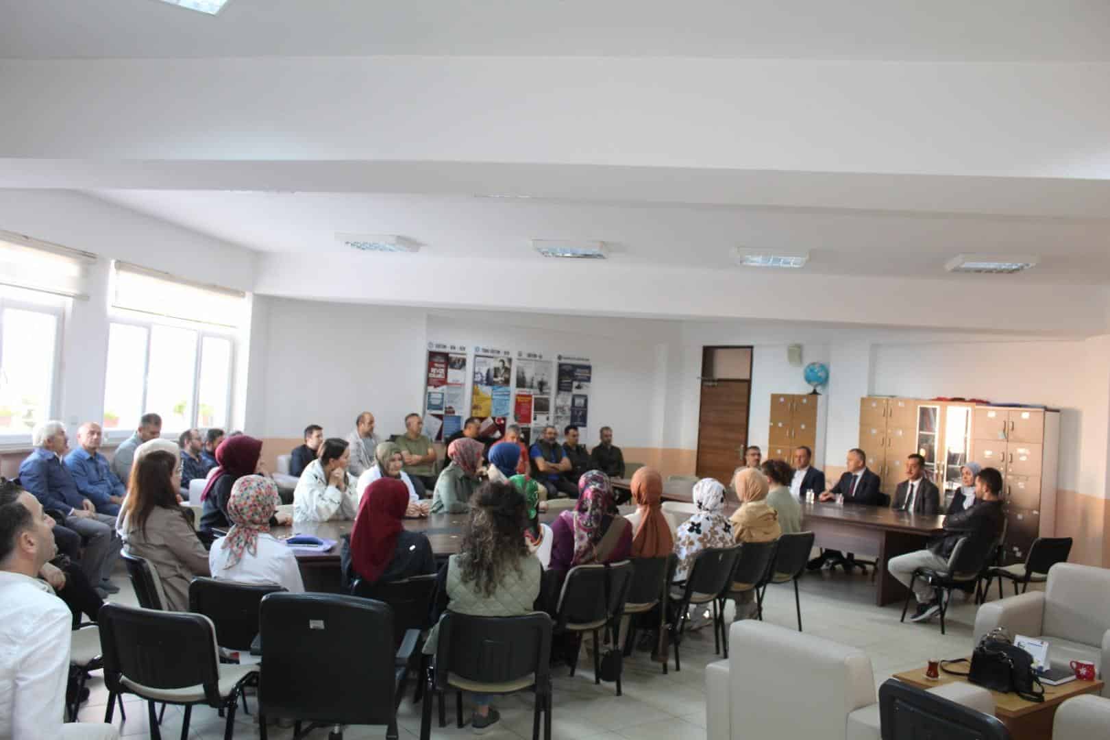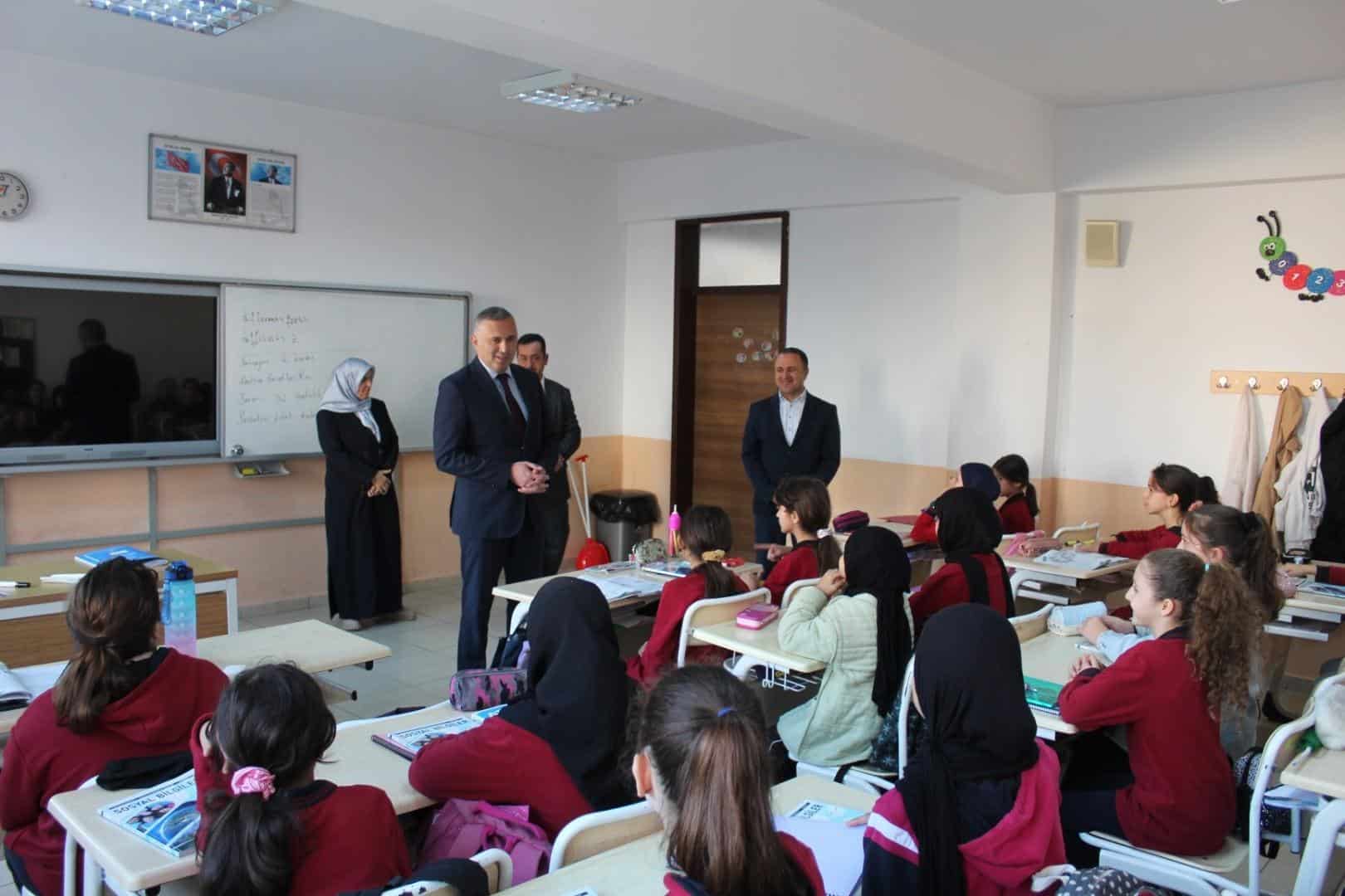 Öğretmenlerin dilek ve görüşlerini dinleyen İlçe Milli Eğitim Müdürümüz, eğitim sürecinin daha etkili ve verimli yürütülmesi için yapılabilecek çalışmalar üzerinde durdu. Ardından sınıfları gezerek öğrencilerle buluşan Müdürümüz, öğrencilerle samimi bir sohbet gerçekleştirdi. Öğrencilerin derslerine yönelik motivasyonlarını artıracak tavsiyelerde bulundu, onların hedeflerini ve hayallerini dinleyerek başarıya giden yolda azimle çalışmalarını öğütledi.