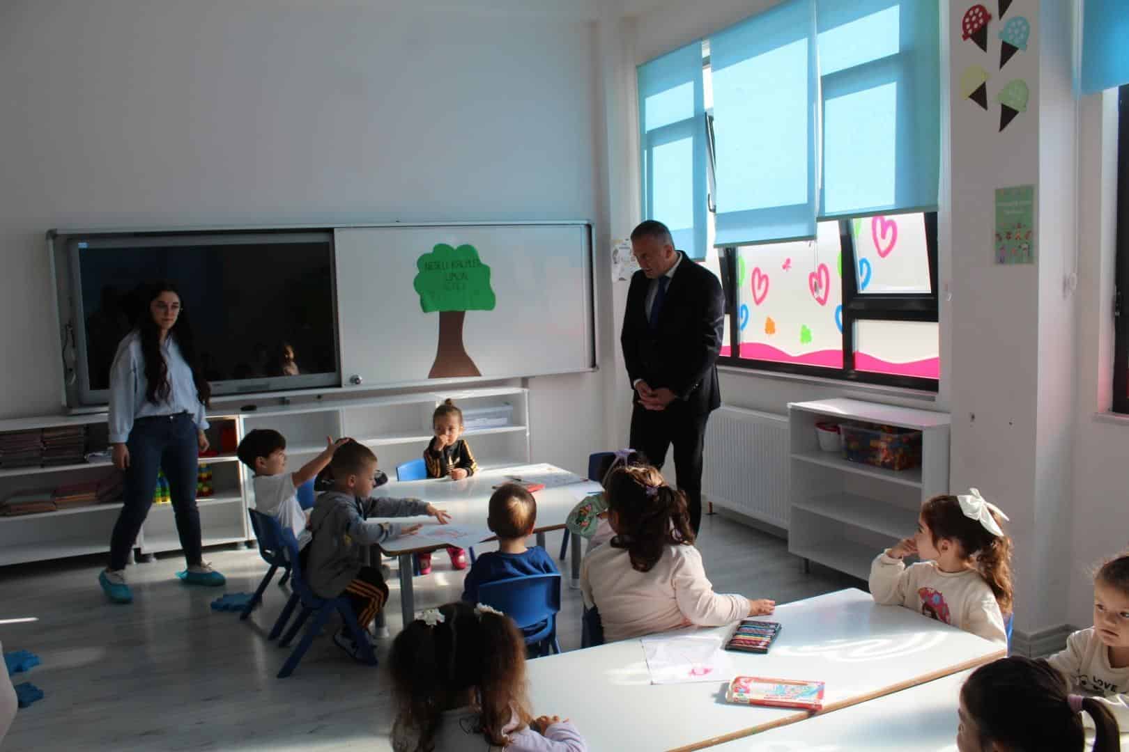 İlçe Millî Eğitim Müdürümüz Suat Evin, Şube Müdürümüz Mehmet Erdoğan ile birlite Kurtuluş Anaokulu'nu ziyaret etti. Ziyarette okul yöneticileri ve öğretmenlerle bir araya gelen müdürümüz, eğitim-öğretim faaliyetleri üzerine bir değerlendirme gerçekleştirdi. Öğretmenlerin dilek ve görüşlerini dinleyen İlçe Millî Eğitim Müdürümüz, eğitim sürecinin daha etkili ve verimli yürütülmesi için yapılabilecek çalışmalar üzerinde durdu. Ardından sınıfları gezerek minik öğrencilerle buluşan müdürümüz, öğrencilerle samimi bir sohbet gerçekleştirdi.
