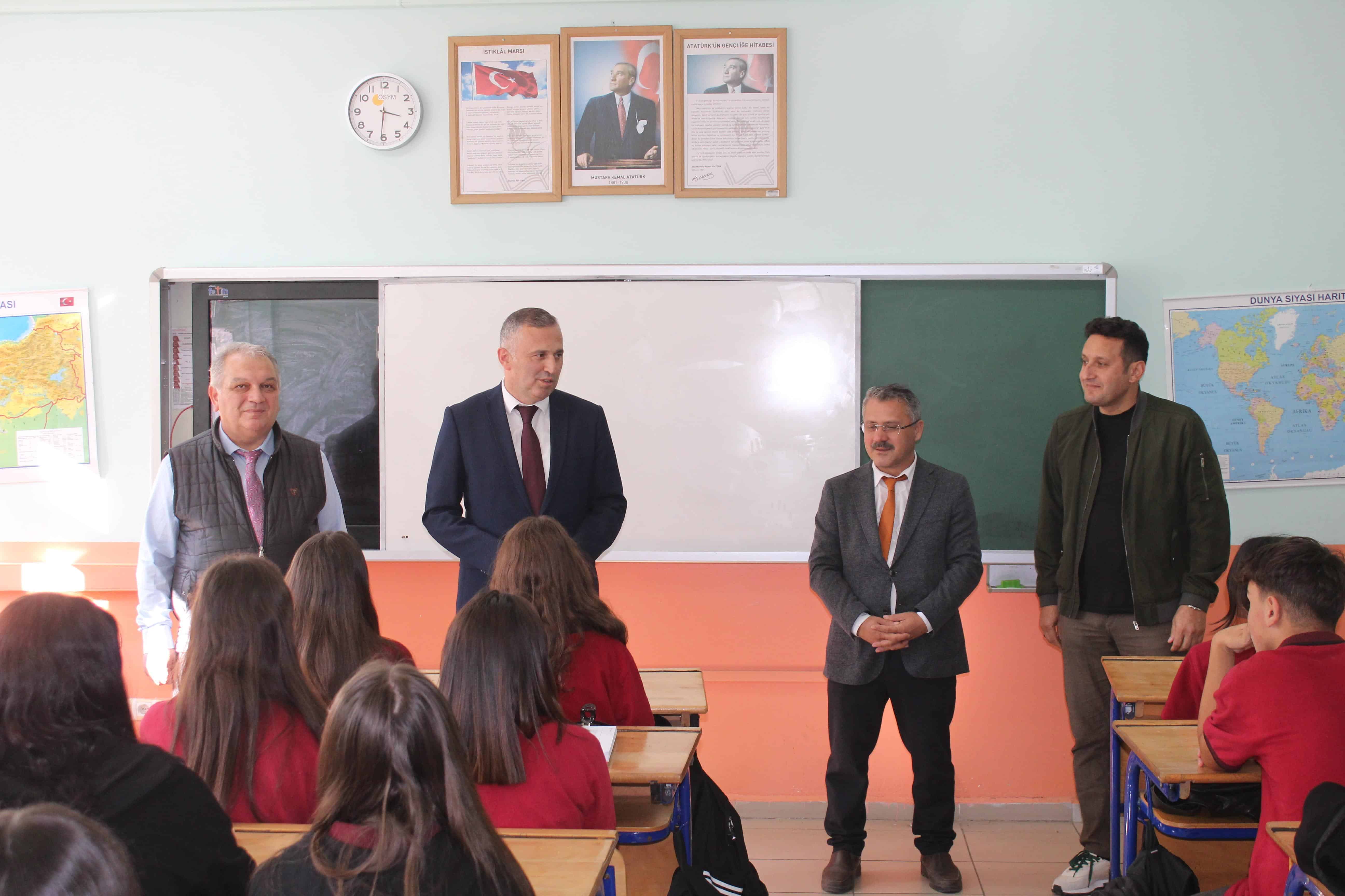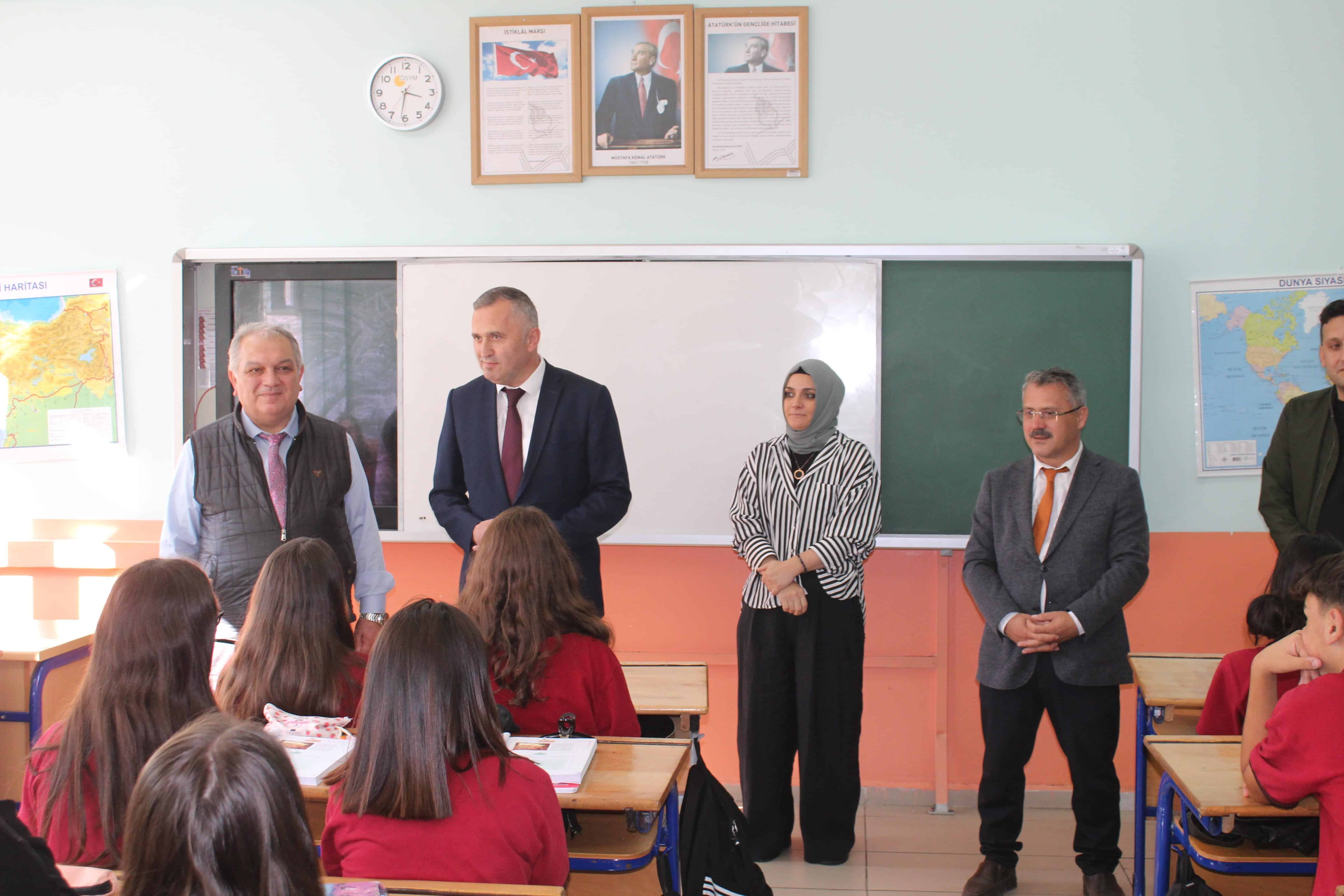 Öğretmenlerin dilek ve görüşlerini dinleyen İlçe Millî Eğitim Müdürümüz, eğitim sürecinin daha etkili ve verimli yürütülmesi için yapılabilecek çalışmalar üzerinde durdu. Ardından sınıfları gezerek öğrencilerle buluşan Müdürümüz, öğrencilerle samimi bir sohbet gerçekleştirdi. Öğrencilerin derslerine yönelik motivasyonlarını artıracak tavsiyelerde bulundu, onların hedeflerini ve hayallerini dinleyerek başarıya giden yolda azimle çalışmalarını öğütledi.